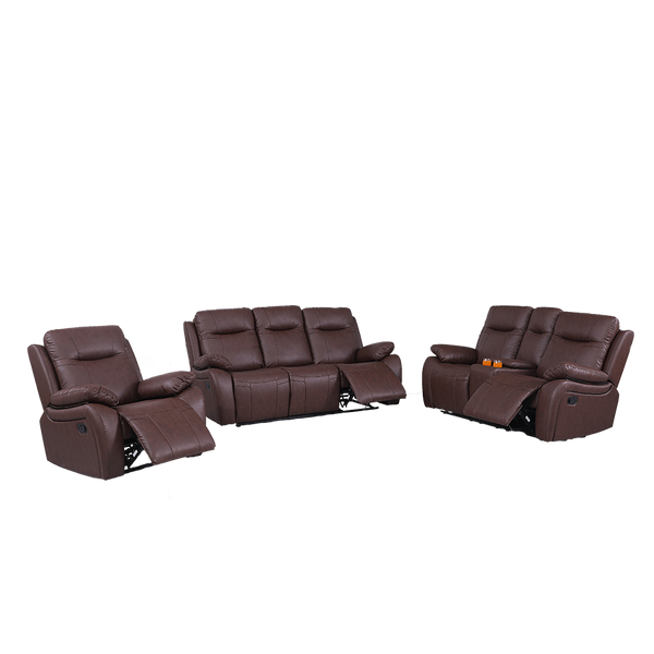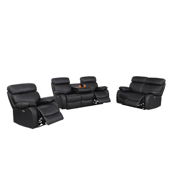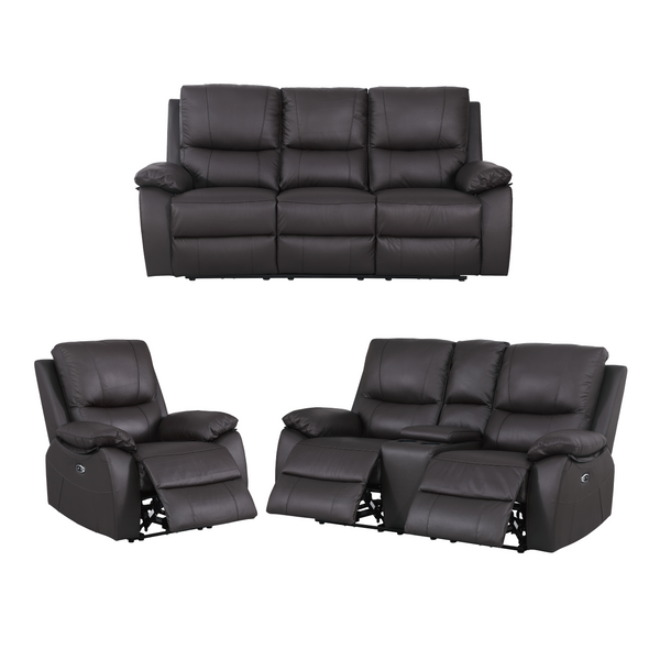 Brita Electric Reclining Sofa Set – Faux Leather with Storage Chaise, USB Charging, Cup Holders & Metal Legs
