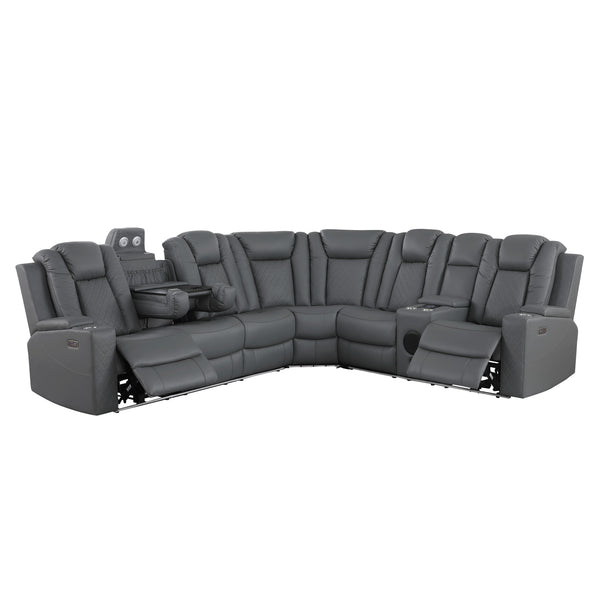 Bonnie Faux Leather Electric Reclining Sectional Sofa in Faux Leather with Cup Holders, USB Charging & Built-In Speakers – Plush & Functional Entertainment Couch